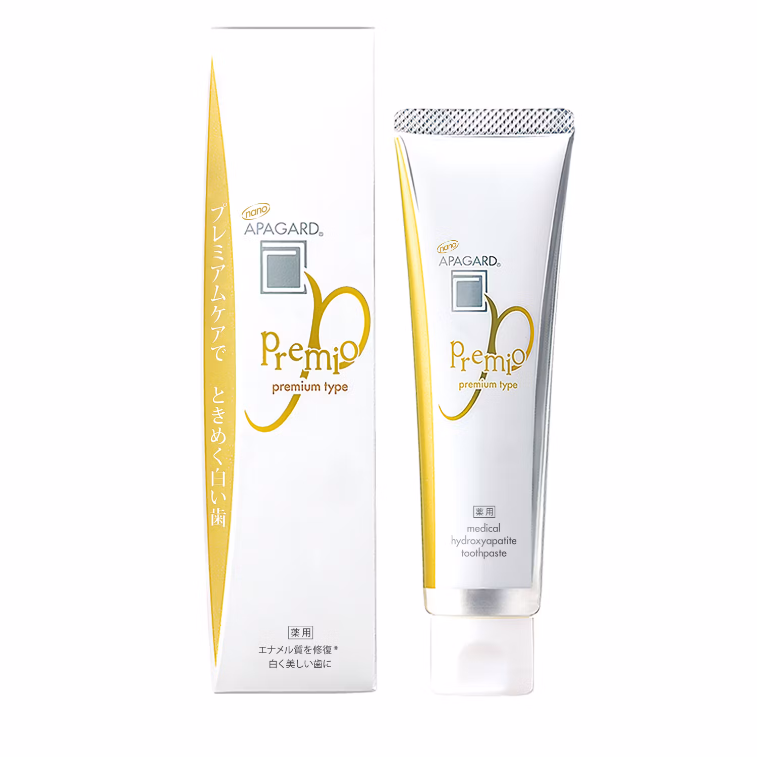 Apagard Premio är särskilt populär i Japan där den används av tandläkare och rekommenderas för dig som vill ha ett premiumalternativ till vanlig tandkräm, med både skydd och kosmetisk effekt.